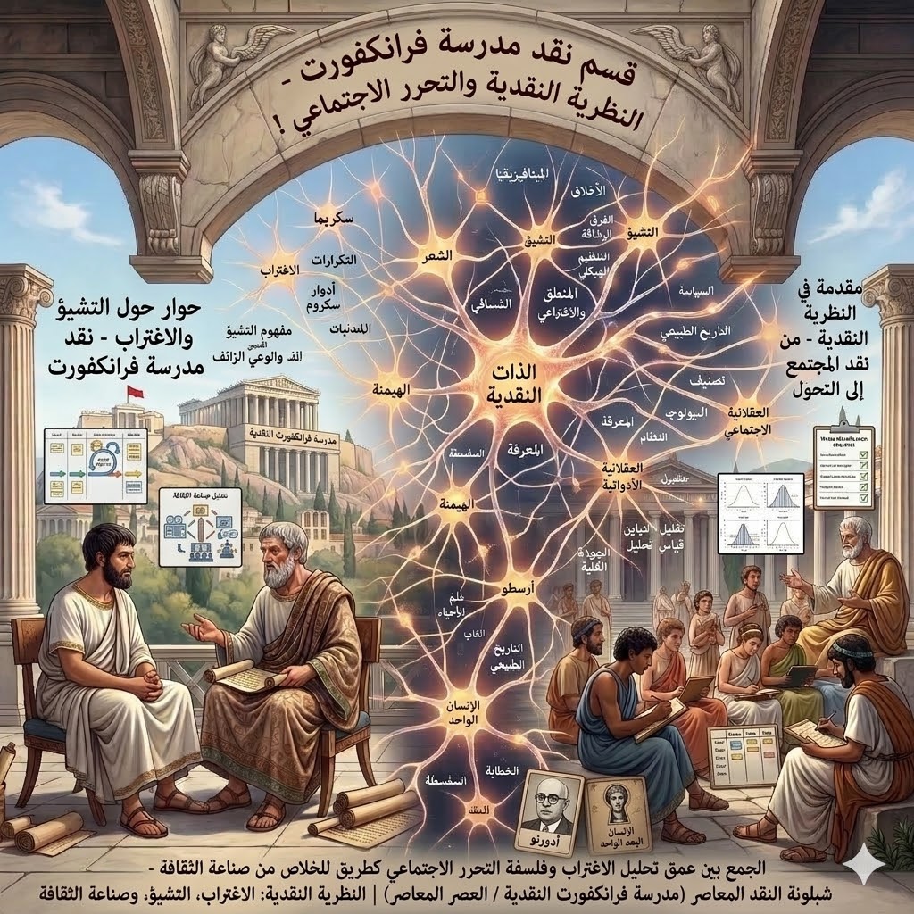 شبلونة أرسطو في قسم الثقافة تساعد على فهم الفكر النقدي والتحليلي بطريقة منظمة، وعند تطبيقها على مدرسة فرانكفورت، نجد نموذجًا متكاملًا لدراسة الثقافة والمجتمع. مدرسة فرانكفورت